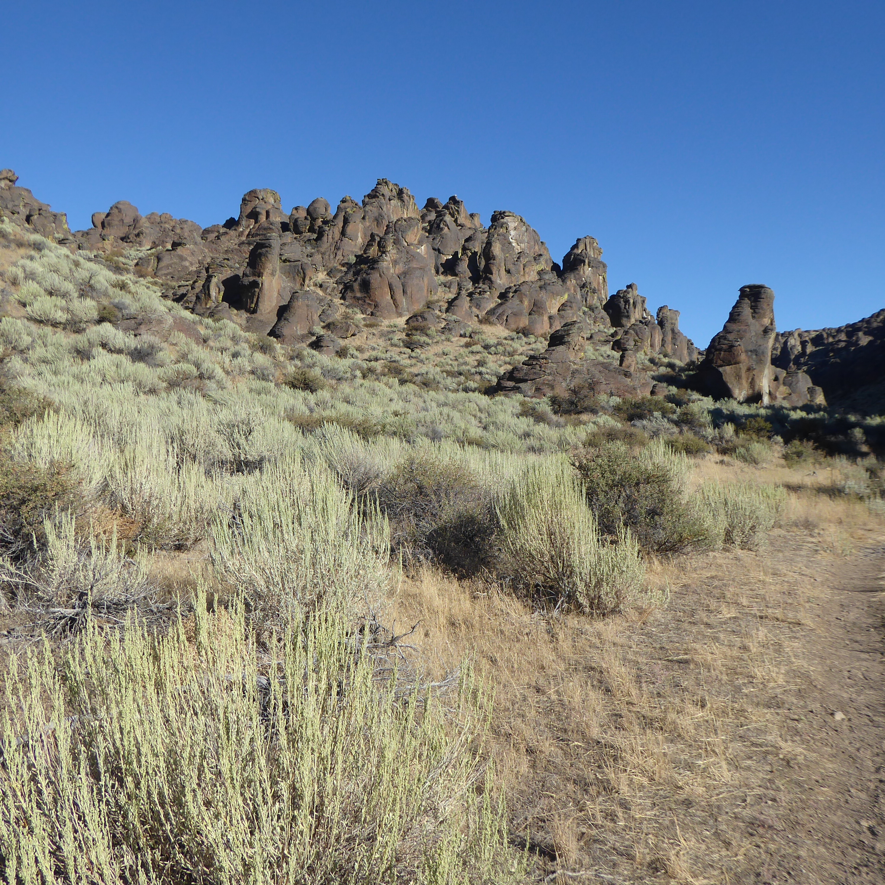 Little City of Rocks is located above Gooding, Id somewhere around the Gooding City of Rocks. The hike itself was around 5 miles with about half of it being on a decent trail and the other half being not great but not too bad. Probably worth seeing and walking down the first trailed section as the volcanic ash hoodoos are interesting. The loop involves going through the valley until it ends and then climbing out of it and along the plateau above it on the way back to another small section before rejoining the main trailed section. Nothing to see on the plateau hike back but a flat rocky plain.