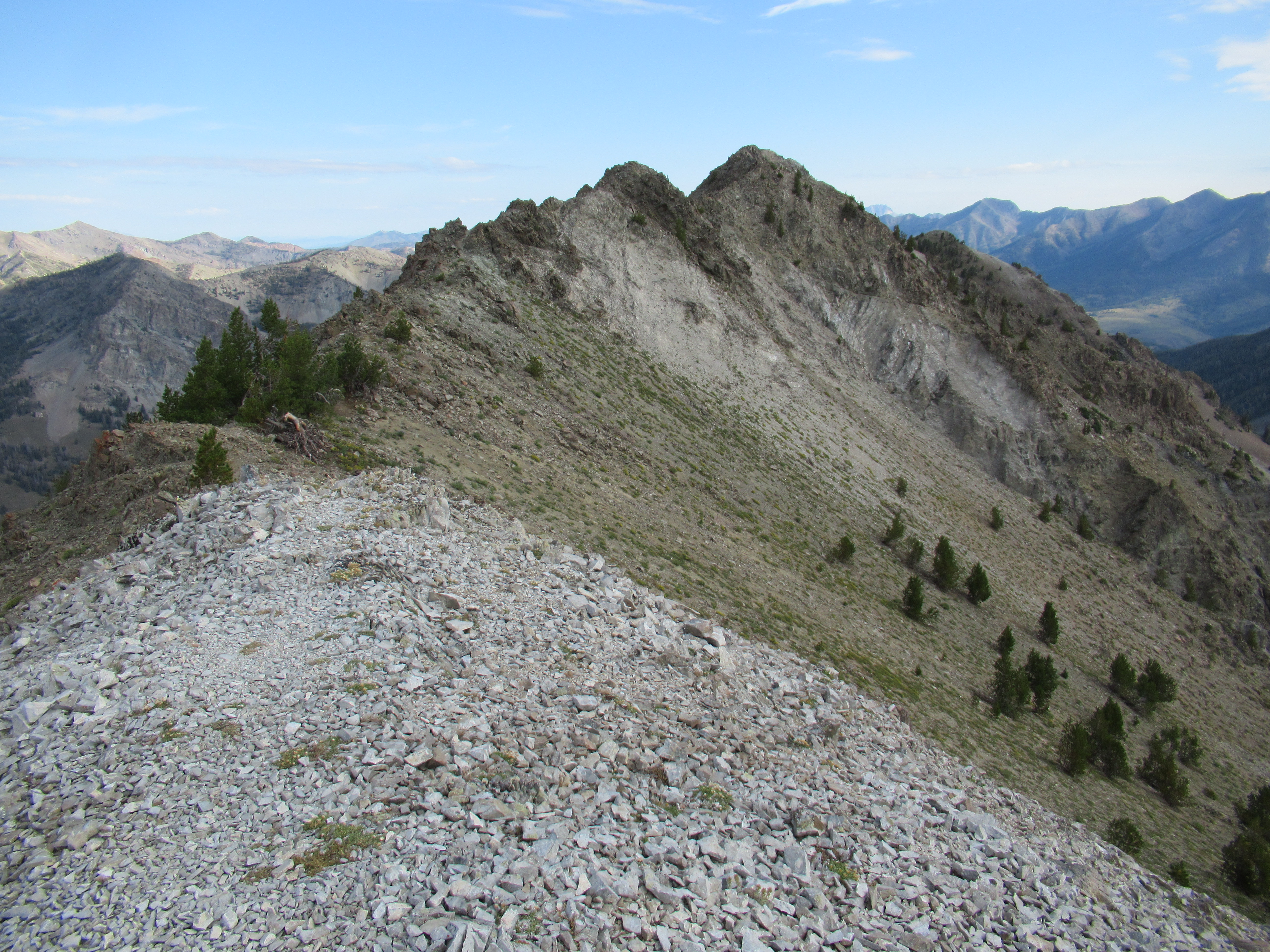 Norton Peak is 10,336 feet high. I did a loop close to the summit last year (or a few years ago) which goes very close to the summit but I had hiked so much during that day that I did not want to go the extra mile round trip to get there. It was probably a good idea since the summit from the saddle where the main trail is was more difficult than I thought. Going along that ridge line was well marked with a trail that mainly ran along the left side. On the way down, I did make it a semi-loop by going around and down a different valley before finishing up at the car.