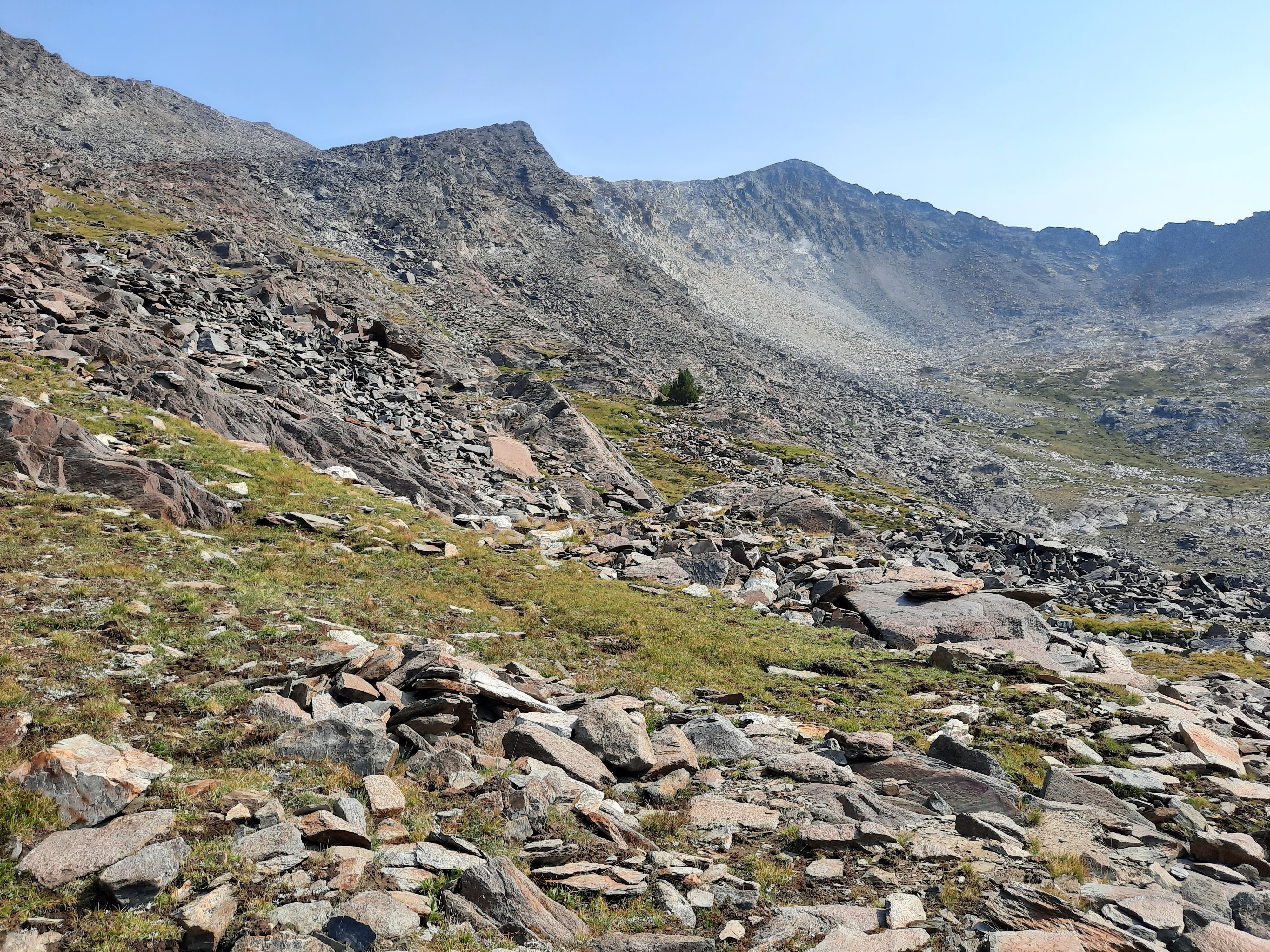 Big Basin Peak is 11,510 feet high. The approach following the same trail that you use to get to Old Hyndman. It's around 12 to 13 miles round trip which is fairly long but the hike itself isn't too bad at all. Unfortunately my GPS batteries died a few hundred yards from the top, so I was not able to get the full trip. The way down is the same as the way up though and the trail for the most part goes most of the way. It is very similar to Old Hyndman where yo go off trail, up fairly steep for a short section and then just make your way further in and up the mountain. It was actually an interesting hike. I might actually do it again some time to get a full GPS but it's also a great and long hike with no people. There are terrific views of Hyndman, Old Hyndman, and Cobb on one side and a few other 11k peaks on the other.