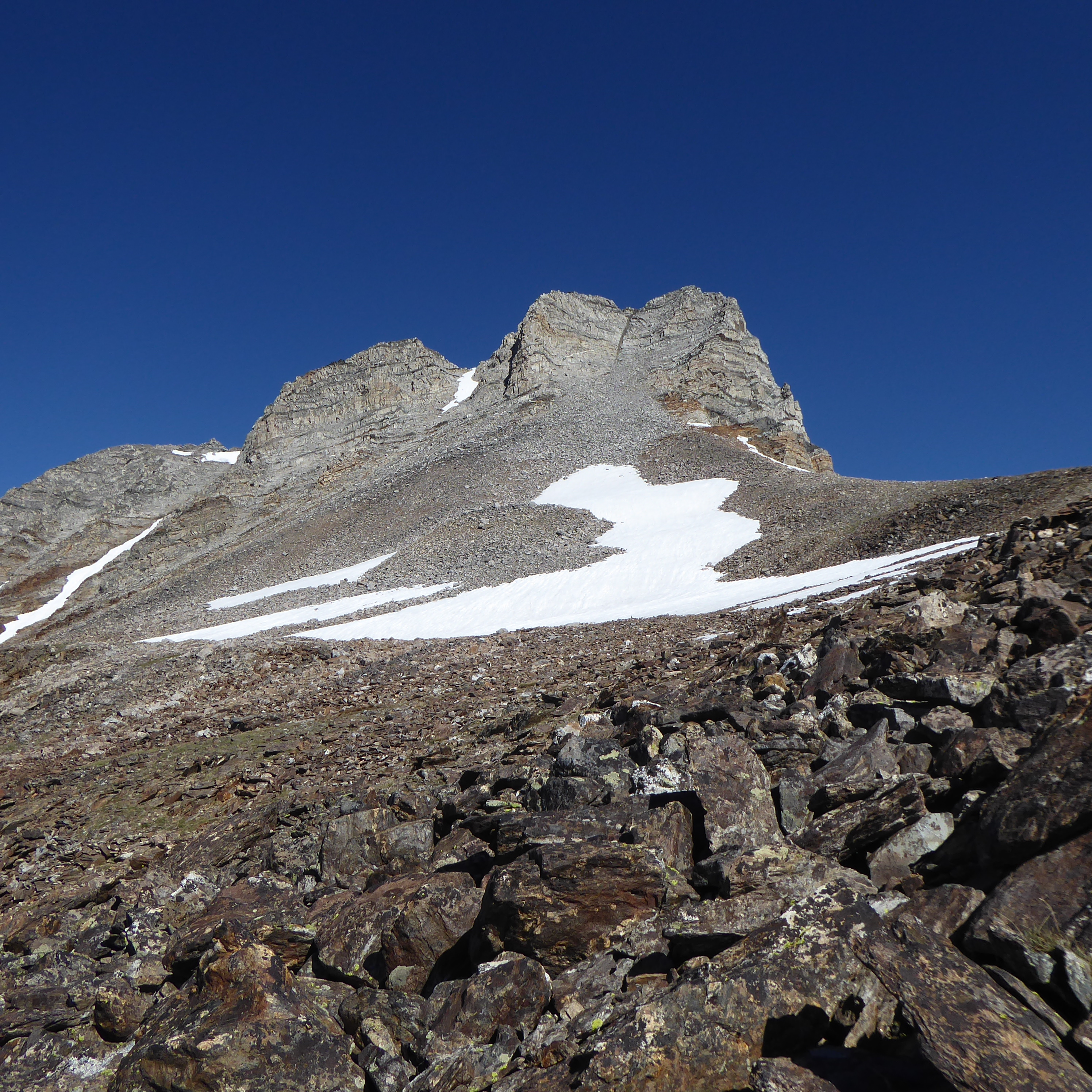 Old Hyndman Peak is 11775 feet high and right next to Hyndman (which I did last year) and Cobb (which I might try sometime if I really enjoy pain and suffering).  The 3 peaks in the Pioneers are called the Triumvirate (they might only be called that if you do all 3 on the same day, but I'm ok calling them that any time).  Doing all 3 in one days would be tough.  I'm just fine doing one at a time.  Old Hyndman starts at the same trailhead as Hyndman and breaks off a few miles in.  The Hyndman trail goes off to the left of Cobb and the Old Hyndman trail goes off to the right of Cobb.  You then cross over a river where you will gets your shoes and socks wet if you don't bring anything to cross.  Another few miles and then you go off-trail until the summit.  It's close to 2700 feet in about 2 miles off-trail with loose rocks most of the way.  Good stuff.  This is the first 'real' mountain I've done this year because of the heavy snow over the winter.  Will try to get more in between now and September.  Trip was great although my legs were not happy after this one.